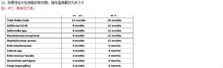| 1. 微生物檢測(cè)瓶除可以檢測(cè)活菌外,死菌可以檢測(cè)么? 答:不能檢測(cè)死菌。 | 2. 微生物檢測(cè)瓶可以檢測(cè)厭氧菌么? 答:檢測(cè)瓶的檢測(cè)范圍即包括厭氧菌(亞硫酸鹽梭狀芽胞桿菌 Sulphite reducing Clostridia,產(chǎn)氣莢膜桿菌 Clostridium perfrigens),也包括需氧菌。 檢測(cè)不同種微類生物的檢測(cè)瓶中試劑不同。對(duì)于厭氧菌,我們有特殊的試劑,如檢測(cè)產(chǎn)氣莢膜桿菌 Clostridium perfrigens。 | 3. 檢測(cè)瓶的檢測(cè)原理都分別用到了哪些檢測(cè)方法? 答:培養(yǎng)皿法、酶法、免疫法、基因法。 | 4. 對(duì)于第 3 題,你能簡(jiǎn)要敘述這些方法的優(yōu)劣勢(shì)么? 答:與傳統(tǒng)的培養(yǎng)基法、膠體金、酶免法和 PCR 法不同,德國(guó)皇家微生物檢測(cè)儀是多種方法的集合。單獨(dú)使用一種檢測(cè)方法都有自己的缺點(diǎn):比如, PCR 法需要專業(yè)技術(shù)人員和昂貴設(shè)備; 培養(yǎng)基法操作復(fù)雜; 膠體金法靈敏度低; 酶免法特異性捕捉不充分。 德國(guó)皇家微生物檢測(cè)瓶快速檢測(cè)系列產(chǎn)品是以上多種方法的綜合運(yùn)用,吸收了每種方法的優(yōu)點(diǎn),彌補(bǔ)了各種方法的不足。 | 5. 用微生物檢測(cè)瓶進(jìn)行微生物檢測(cè)時(shí),步是先放樣本還是無菌水? 答:都可以。 | 6. 對(duì)樣本進(jìn)行微生物接種時(shí),需要在無菌環(huán)境下進(jìn)行么? 答:檢測(cè)瓶是通過捕捉特異性,結(jié)合多種檢測(cè)法進(jìn)行分析。無菌環(huán)境與否均可(臨檢的場(chǎng)所大都是非無菌環(huán)境)。 | 7. 檢測(cè)瓶可以檢測(cè)表面樣本和固態(tài)樣本么? 答:可以檢測(cè)固態(tài)、液態(tài)、表面樣本(用所配棉棒沾濕無菌水后涂抹表面)。紙漿等膏狀、糊狀、粘稠狀昂本都可以檢測(cè)。 | 8. 檢測(cè)瓶在檢測(cè)固態(tài)樣本時(shí)需要對(duì)進(jìn)行研磨、稀釋等前處理過程么? 答:直接將樣本放入檢測(cè)瓶,無需任何前處理。 | 9. 每次檢測(cè)的無菌水用量是多少? 答:一般是 11ml。如果是檢測(cè)液態(tài)樣本或水樣本,建議加樣 1ml,加無菌水 10ml。 | 10. 放入樣本和無菌水后,“搖勻使其充分溶解和混合”這一操作步驟,無論定性分析還是定量分析,都是必要的步驟么? 答:是的,搖勻無論是定性還是定量分析都是必要步驟。 | 11. 不同的微生物對(duì)應(yīng)的孵育溫度是一樣的么?請(qǐng)舉例說明。 答:不一樣。37 攝氏度居多:活菌總數(shù)、沙門氏菌、李斯特菌等,大腸桿菌 44 攝氏度等,詳細(xì)請(qǐng)參考對(duì)照表。 | 12. 若是檢測(cè)冷菜或者冰欺凌這樣的樣本,孵育是否應(yīng)該低溫進(jìn)行? 答:對(duì)檢測(cè)樣本自身的溫度沒有限制,檢測(cè)樣本中微生物,請(qǐng)嚴(yán)格遵照所檢測(cè)微生物對(duì)應(yīng)的孵育溫度,依然根據(jù)對(duì)照表。 | 13. 如果想加快檢測(cè)時(shí)間,孵育溫度可以調(diào)至高于所檢測(cè)微生物對(duì)應(yīng)的孵育溫度? 答:不可以,嚴(yán)格遵照對(duì)照表。 | 14. 操作手冊(cè)規(guī)定放入的樣本量為多少? 答:0.1g‐1.0g 或 0.1ml‐1.0ml。 | 15. 若放入的樣本量高于規(guī)定的樣本量,檢測(cè)結(jié)果會(huì)不同,或者檢測(cè)結(jié)果(定量時(shí))增加么? 答:樣本量多一些或少一些,定量分析結(jié)果不會(huì)有變化。 原因:傳統(tǒng)的微生物學(xué)檢測(cè)方法,包括參考方法,即基于固體選擇性培養(yǎng)基的菌落計(jì)數(shù)法內(nèi)在的統(tǒng)計(jì)分散度(統(tǒng)計(jì)名詞,也稱為統(tǒng)計(jì)變異,是變量或概率分布蔓延,常見的例子是方差,標(biāo)準(zhǔn)差和四分位距。)大于 50%。很多實(shí)驗(yàn)室已經(jīng)證實(shí)皇家生物檢測(cè)法與其他檢測(cè)方法比統(tǒng)計(jì)分散度低,可信度高。但不管怎樣,25‐30%的統(tǒng)計(jì)分散度還是有的。另外,由采樣產(chǎn)生的統(tǒng)計(jì)分散度同樣應(yīng)該考慮在 內(nèi),尤其是微生物經(jīng)常容易繁殖的固態(tài)的肉制品類。 因此,加樣是 0.5g 或 1.5g 所得的結(jié)果在統(tǒng)計(jì)上是等價(jià)的(和其他任何方法獲得的結(jié)果相等)。 | 16. 對(duì)于面粉這類低密度的散裝樣本,可以照常檢測(cè)么? 答:可以。 | 17. 對(duì)于醬油這樣的深色樣本,會(huì)影響定性檢測(cè)結(jié)果的判讀么?您有什么好的建議? 答:如果搭配檢測(cè)儀進(jìn)行定量分析,不存在這個(gè)問題;如果只是通過肉眼觀察變色進(jìn)行定性分析,深色樣本如果擔(dān)心肉眼不能夠清晰的辨認(rèn),建議進(jìn)行稀釋后再進(jìn)行檢測(cè)。還記得第 15 題得答案么?加樣是 0.5g 或 1.5g 所得的結(jié)果在統(tǒng)計(jì)上是等價(jià)的和其他任何方法獲得的結(jié)果相等)。稀釋同樣的道理。 | 18. 如果是檢測(cè)水樣,還需要加入無菌水么?加多少? 答:建議加水樣 1ml,無菌水 10ml。 | 19. 不同的微生物對(duì)應(yīng)的開始顏色和呈陽(yáng)性的顏色都相同么?請(qǐng)舉例說明。 答:不同。 例如,沙門氏菌孵育 10 分鐘左右出現(xiàn)的開始顏色為紅色,陽(yáng)性顏色為黃色;李斯特菌,開始顏色為藍(lán)色,陽(yáng)性顏色為黃色。具體請(qǐng)參考對(duì)照表。 | 20.微生物檢測(cè)儀兼?zhèn)浞跤龣C(jī)的功能么? 答:是的。將檢測(cè)瓶充分搖勻后立即放入檢測(cè)儀,在軟件上進(jìn)行檢測(cè)菌類設(shè)置后。 